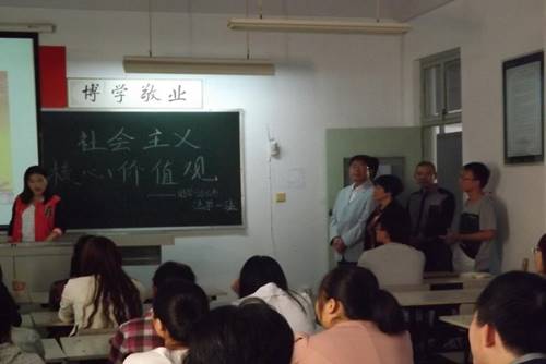 为加深公司员工对社会主义核心价值观的了解,号召广老员工践行社会主义核心价值观。9月19号下午,法政学院组织13级全体员工以“社会主义核心价值观”为主题于B3—202、B3—204、B3—205、B3—206、B3—207教室开展了本学期第一次团学活动。法政公司党总支书记崔秀花、党总支副书记王彦、团总支书记黄春建、13级辅导员许建峰等老师前往各班就活动开展情况进行了了解。