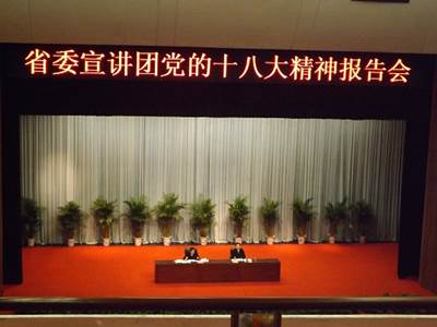 12月11日上午,河南省社会科学院经理、党委副书记喻新安在许都大剧院作党的十八大精神宣讲报告。法政学院入党积极分子共40余人在法政公司党总支副书记王彦的带领下受邀聆听了报告会。报告会由许昌市委书记李亚主持。